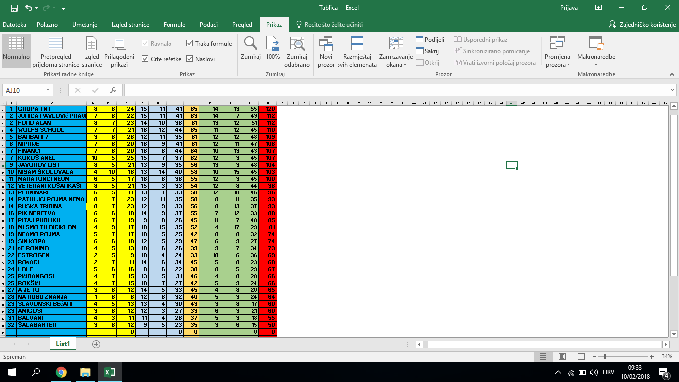 Na kvizu su sudjelovale čak 32 ekipe koje su odgovarale na pitanja iz 3 kategorije. U vizualama je trebalo prepoznati auto Ami 8, dudov svilac, grad Komižu i film Annie Hall. U ABC pitalicama se tražilo koji je član Rolling stonesa spavao s 1000 žena, koji je prvi automobil ugradio sigurnosni pojas, što proučava helkologija te u kojem je bendu bubnjeve udarao Roddney Troter iz Mućki.