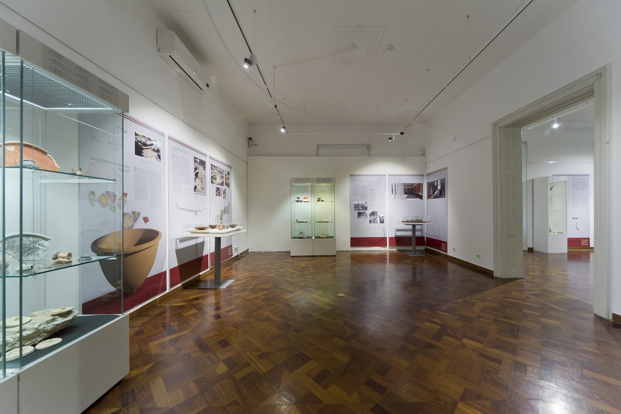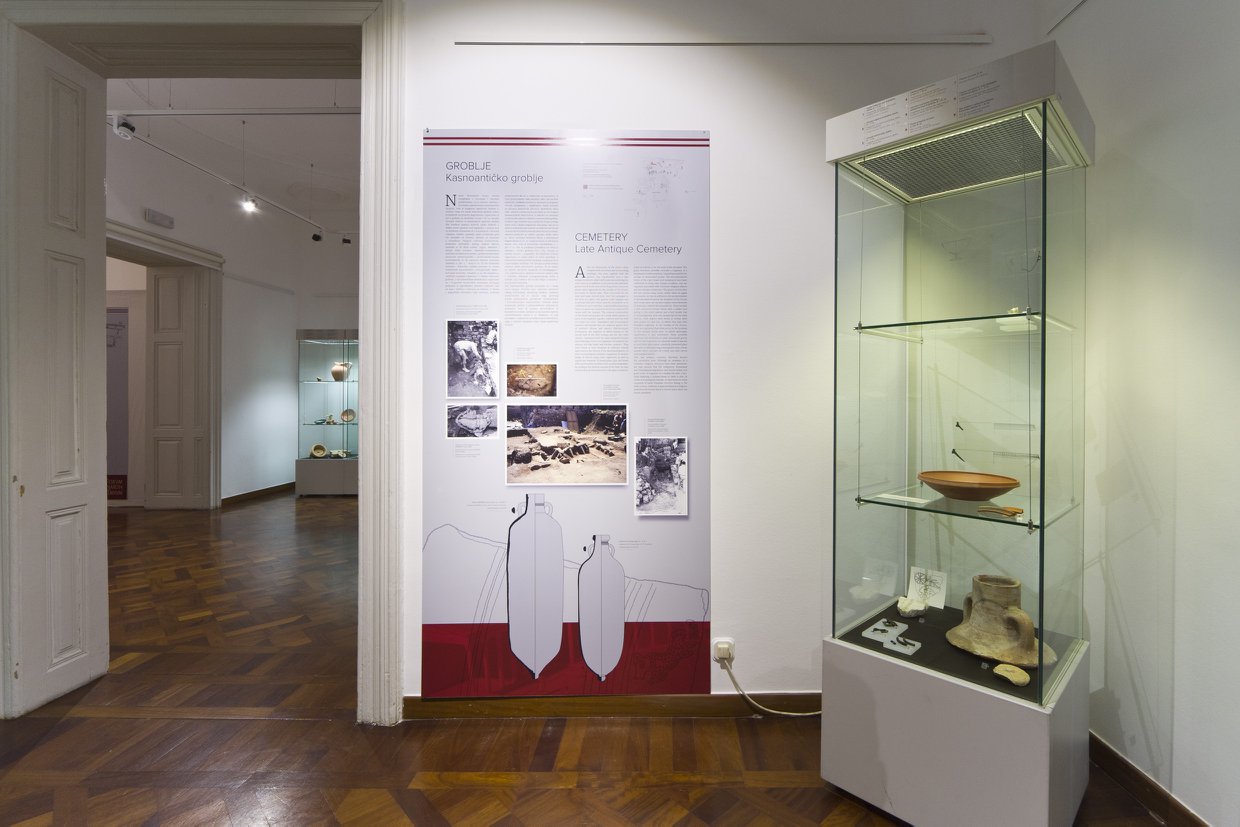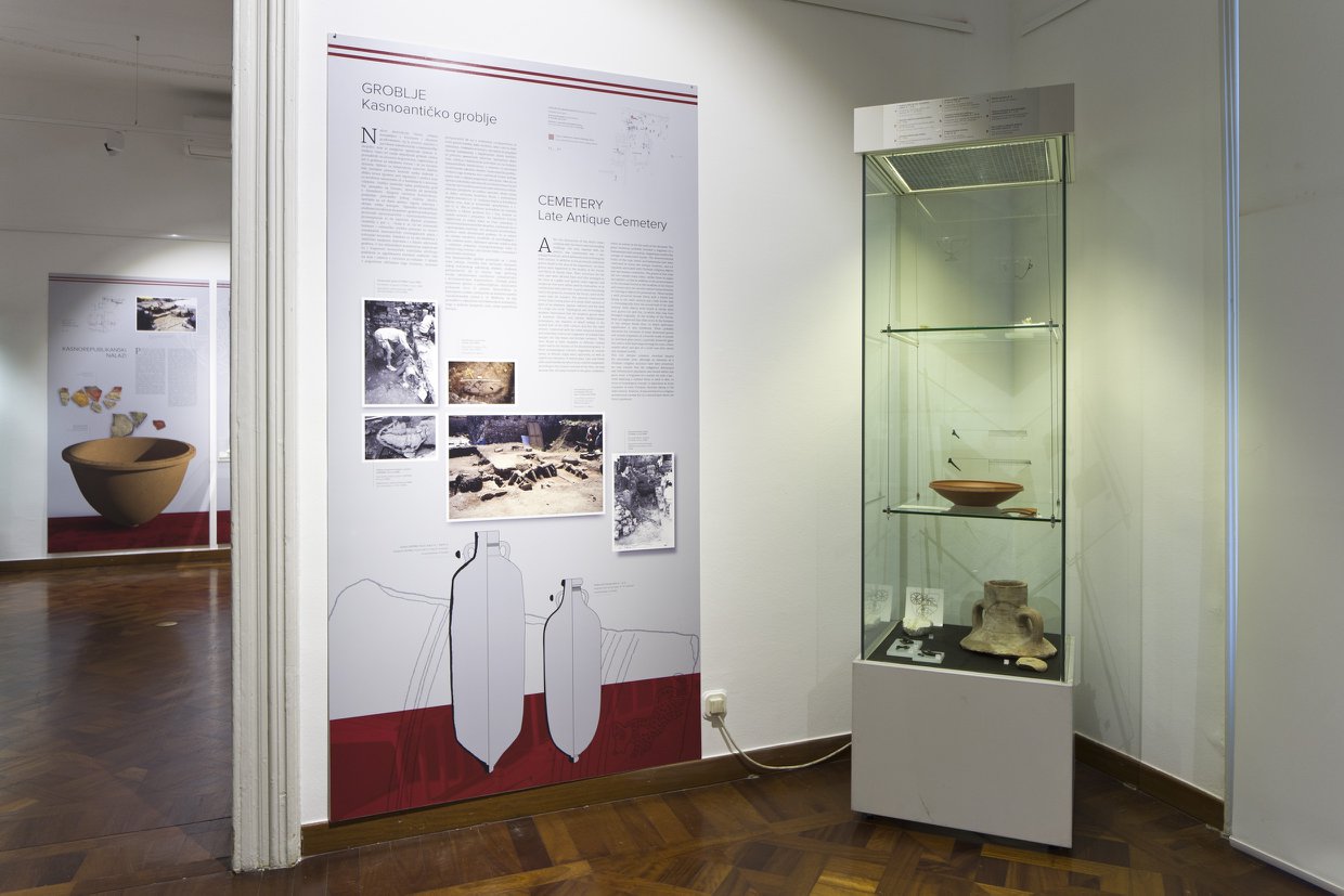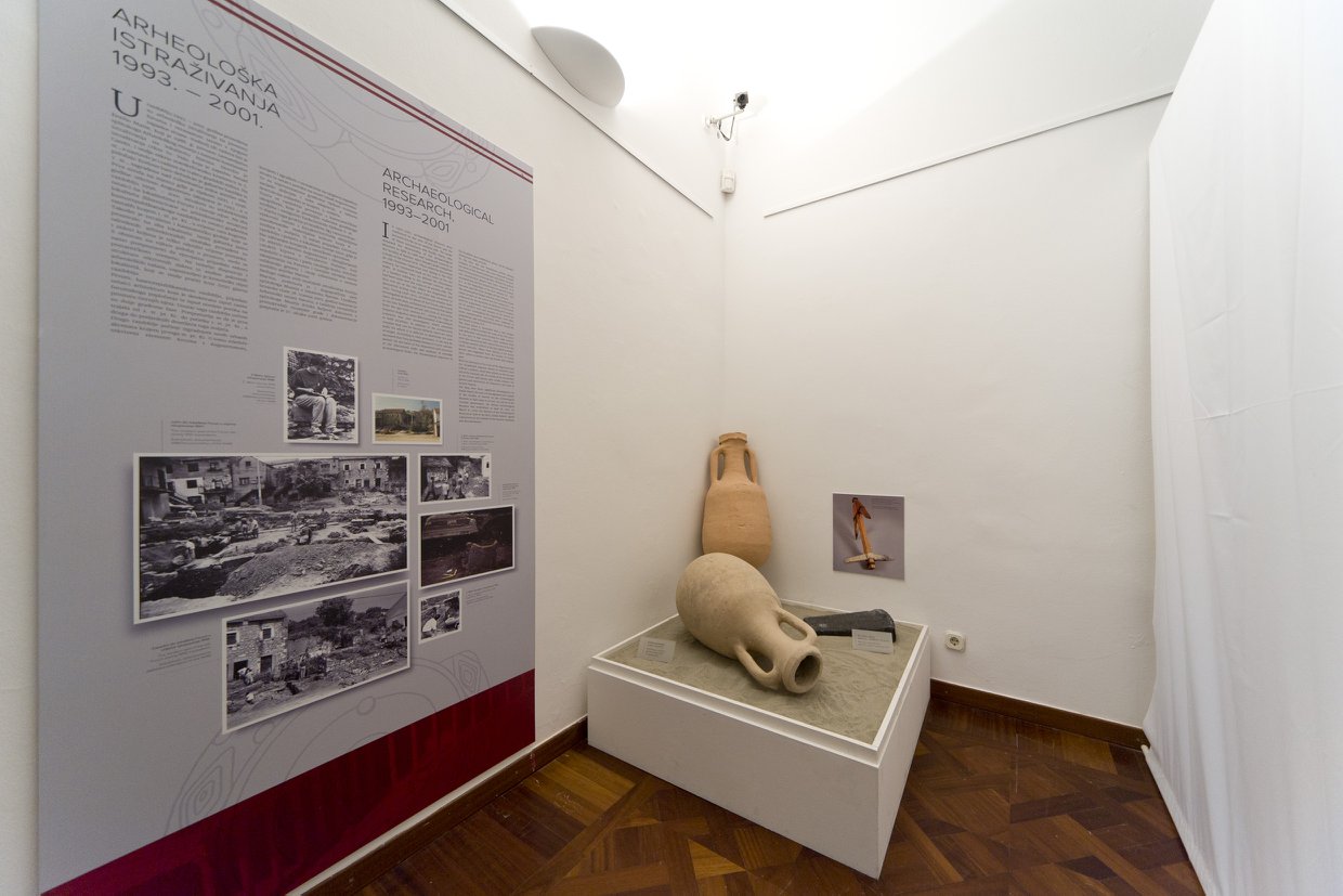 Postav prikazuje kronologiju istraživanja i različite vremenske faze života na tim lokalitetima kroz tlocrte terena, fotografije nastale tijekom istraživanja, crteže predmeta te 3D rekonstrukcije arhitekture i pokretnih arheoloških nalaza datiranih od 2. st. pr. Kr. do sredine 9. st.