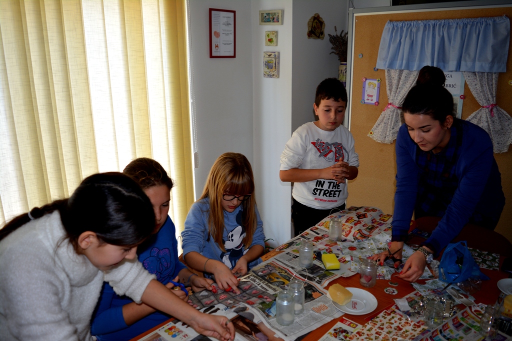 U ovu grupu slobodnih aktivnosti pri OŠ Stjepana Radića koja djeluje već tri godine, uključeno je 16 učenika od 1. do 4. razreda. Djeca su zagrnula rukave, uzeli kistove u ruke, akrilne boje, salvete i ostali pribor, te počeli sa izradom svojih čestitki i svijećnjaka. Svoju kreativnost nisu krili ni pripadnici Udruge, te su dali mašti na volju kako bi njihov svijećnjak izgledao što zanimljivije.