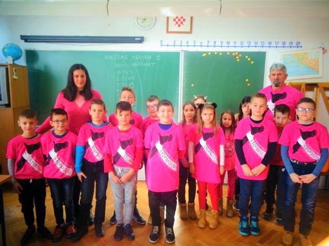 Nastavnici i učenici Osnovne škole Stjepana Radića danas su na nastavu došli u ružičastim majicama kao znak podrške Danu ružičastih majica – programu prevencije vršnjačkog nasilja.