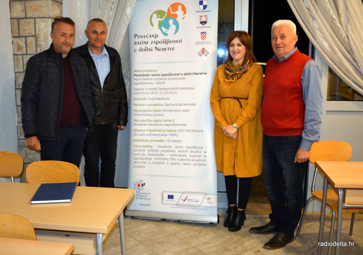 Projekt „Povećanje razine zapošljivosti u dolini Neretve“, u partnerstvu provode Grad Metković i Općina Kula Norinska.