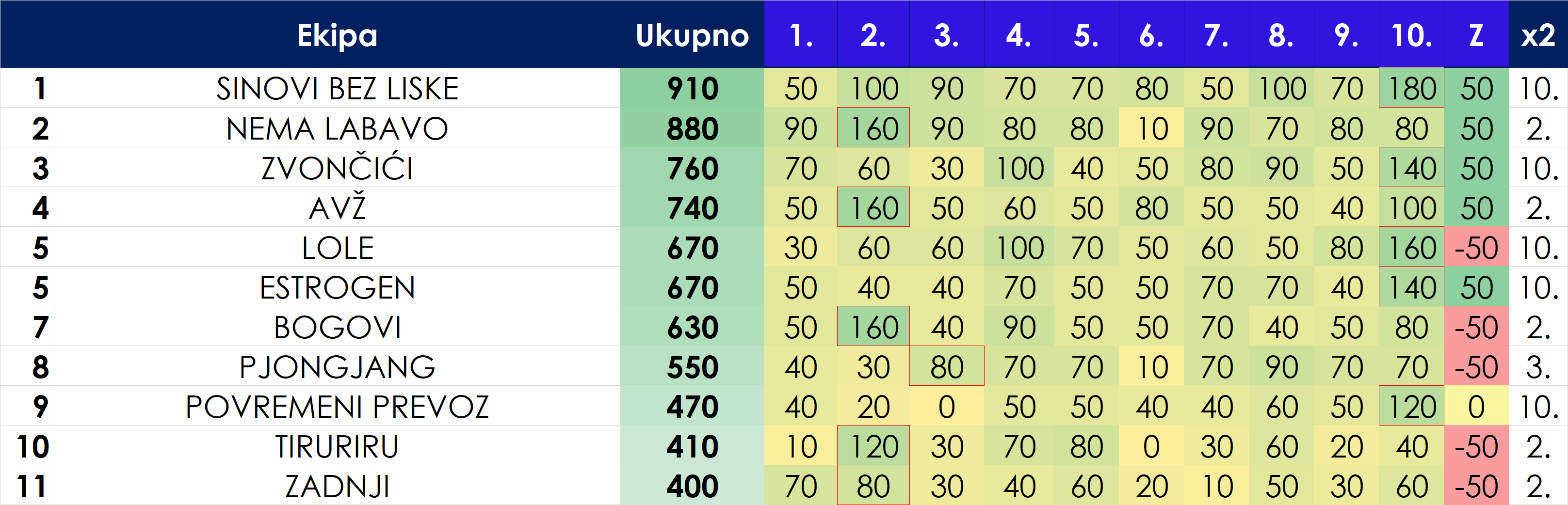 Na drugom mjestu je ekipa „Nema labavo“ s 880 bodova, dok je treća ovaj put bila ekipa „Zvončići“ sa 760 bodova.